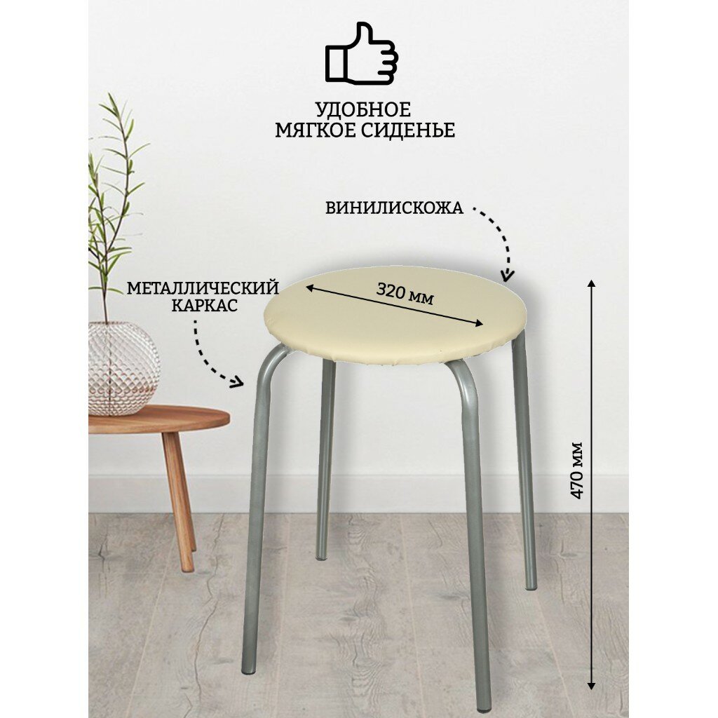 Табурет 320х320х470 мм, бежевый, сиденье круглое, винилискожа, на четырех металлических опорах, Nika, ТЭ2/Б