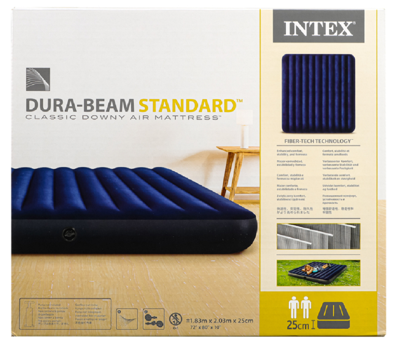 INTEX Кровать надувная Classic downy (Fiber tech) Кинг,1,83м x 2,03м x 25см, 64755