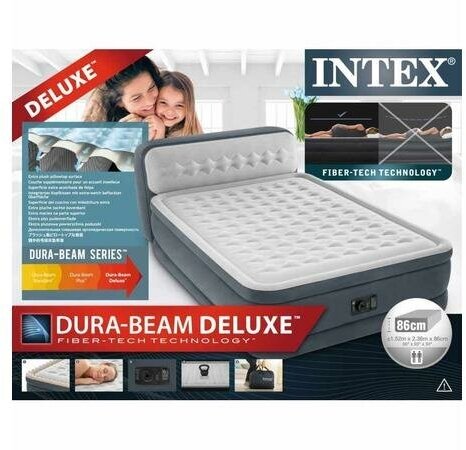 INTEX Надувная кровать с насосом Ultra Plush Heardboard 152*236*86 см 64448