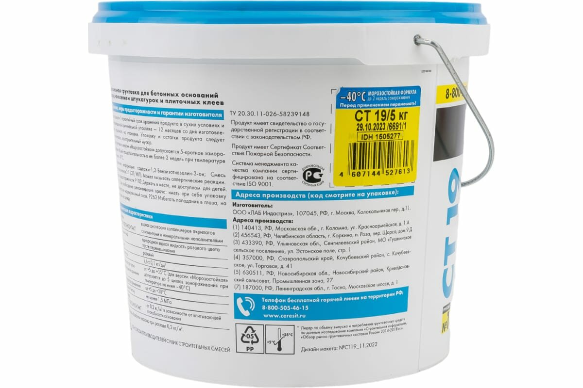 Грунтовка Бетонконтакт Ceresit СТ-19 (Церезит), морозостойкая "Зима", 5 кг