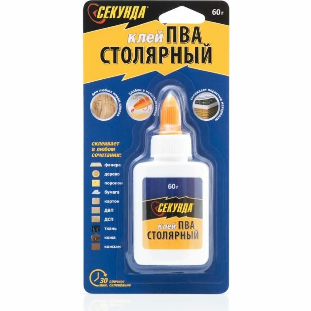 Клей ПВА столярный Секунда, 60 г, белый