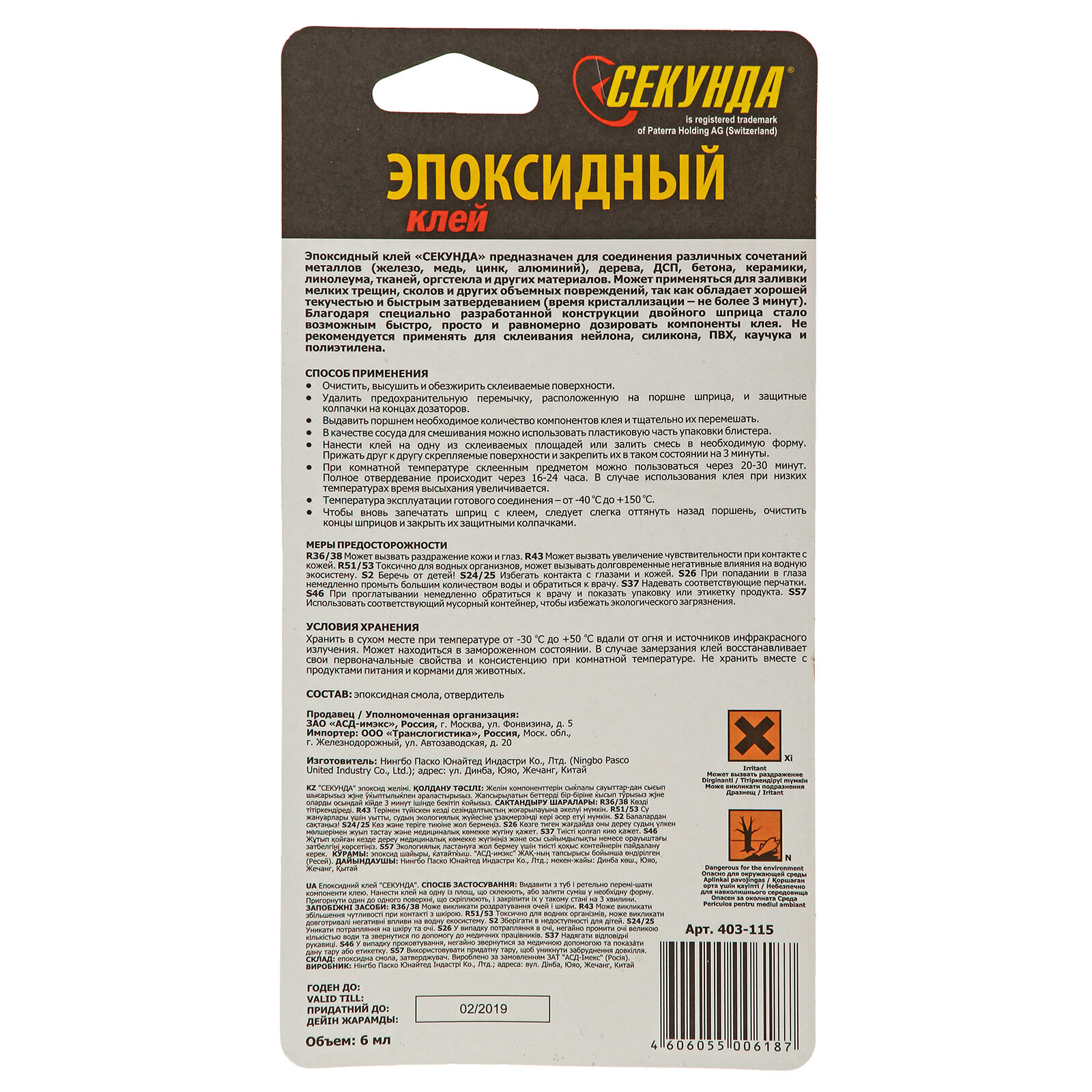 Клей Секунда Эпоксидный 2-х компонентный, универсальный 6мл 403-115