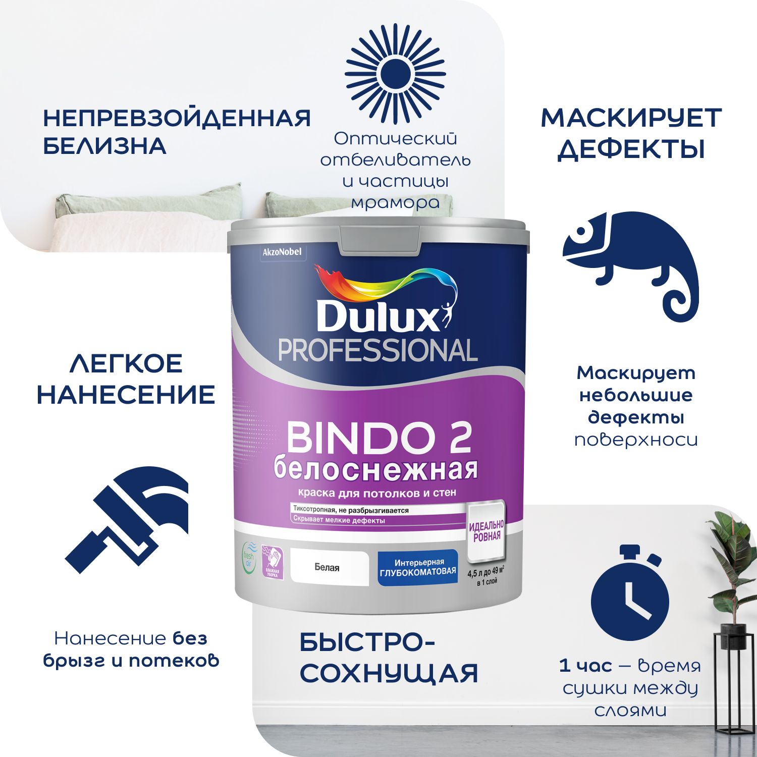 Краска Dulux Professional Bindo 2 глубокоматовая белоснежная 4,5 л