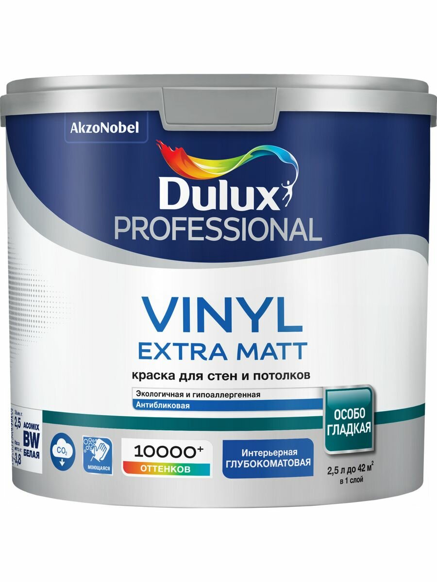 Dulux Diamond Extra Matt , 2.5л, белая краска, BW интерьерная