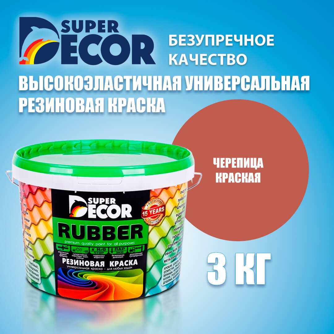 Резиновая краска Super Decor Rubber №02 Черепица красная 6 кг, матовая краска без запаха, для бетона, дерева, фасада