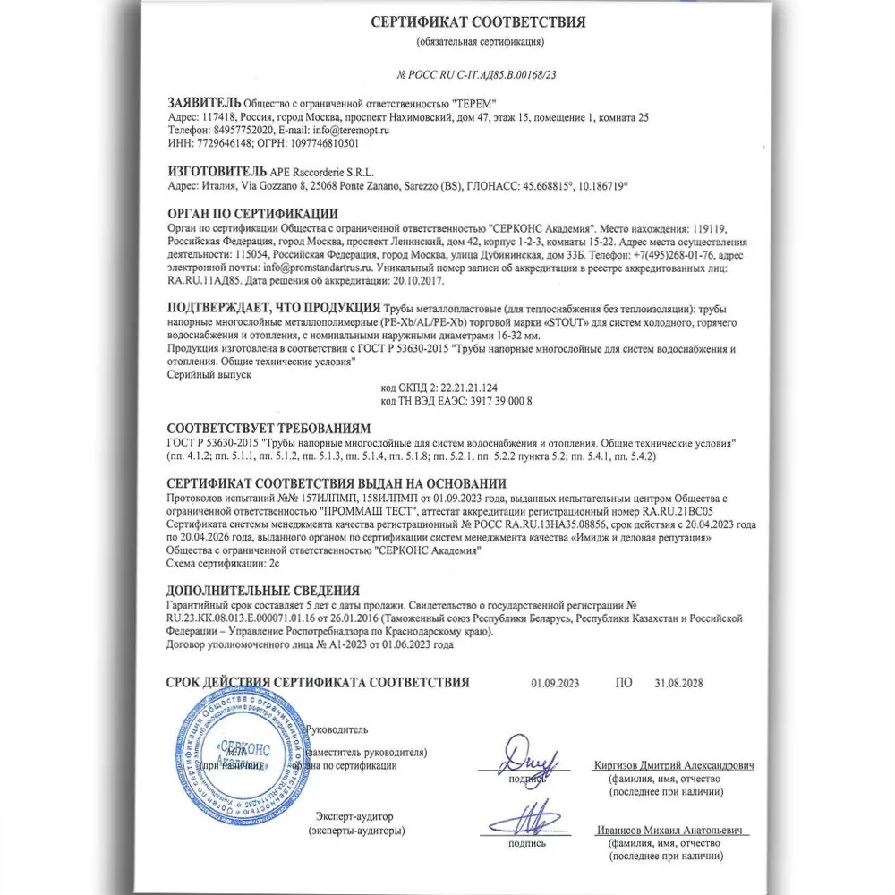 STOUT Труба 16 x 2.0 (200) PEX-AL-PEX металлопластиковая (Завод: APE. Italy)