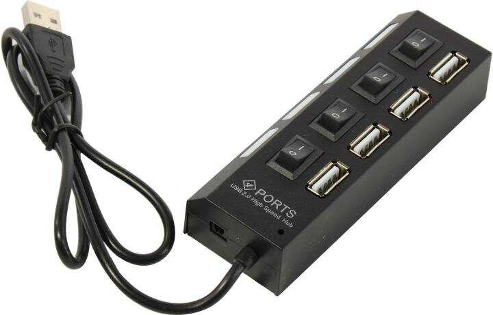 Разветвитель USB Gembird UHB-U2P4-02 хаб - концентратор 4 порта USB2.0 выключатели + блок питания линейка - чёрный