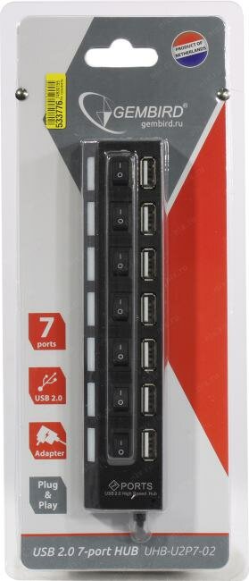 UHB-U2P7-02 Концентратор USB 2.0 Gembird Uhb-u2p7-02, 7 портов, питание, блистер