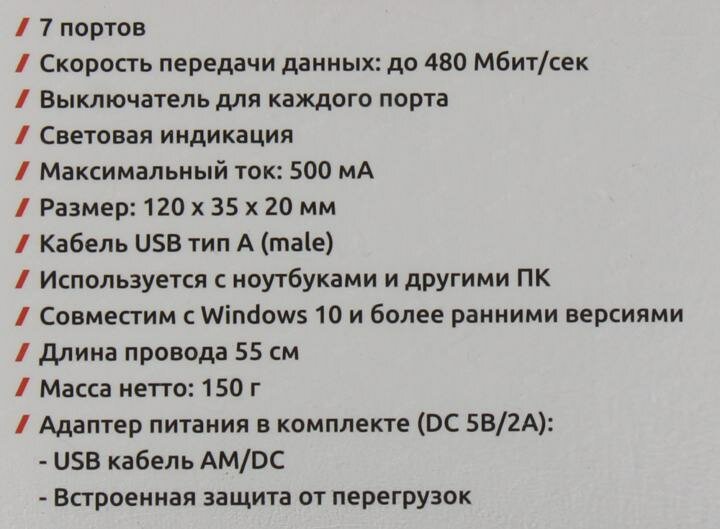 | Минусы: | Не видит половину устройств, например, вебкамера или клавиатура никак не контачат, мышка, микрофон, наушники нормально через него детектятся. Упаковка вся грязная, хлипкая, не пойми откуда, названия фирмы нет. |