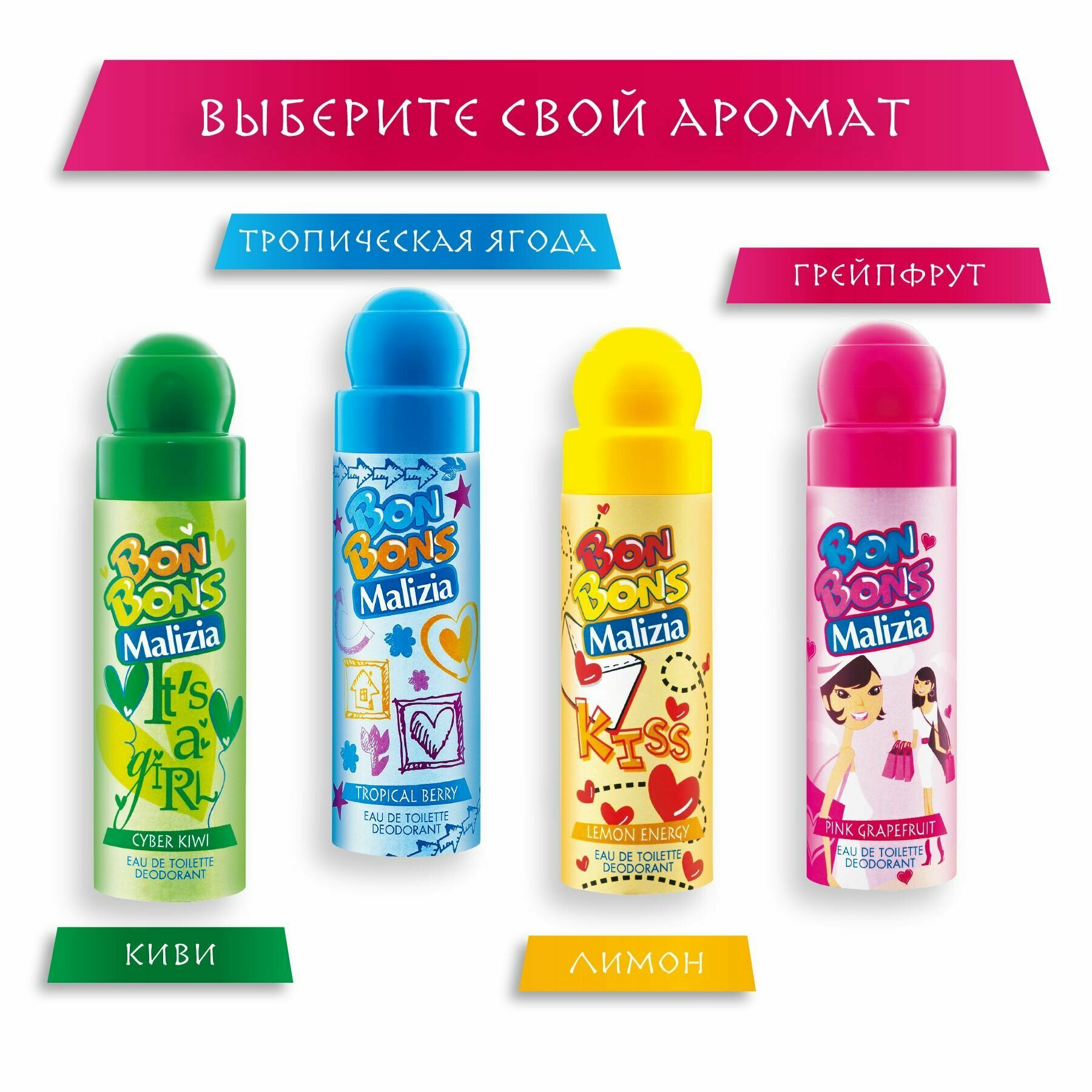MALIZIA Дезодорант детский BONBONS ROSE GRAPEFRUIT 75 мл 2 шт