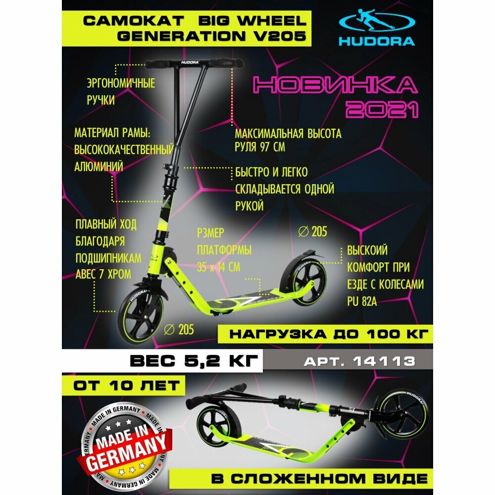 Самокат HUDORA Big Wheel Generation V 205, салатовый 14113 интересное: