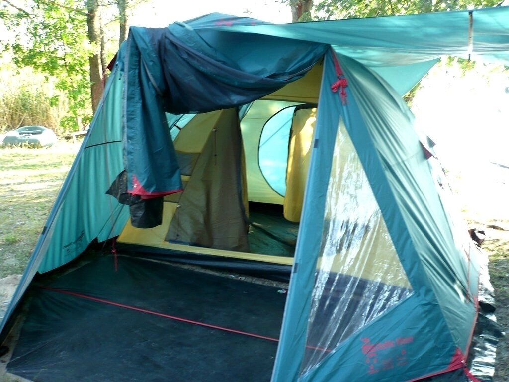 | Плюсы: | Огромная палатка, 4 человека и средних размеров собака неделю спали в ней с полным комфортом, не толкаясь локтями и коленями. Встать в палатке в полный рост - отдельное удовольствие. Материалы качественные, всё прошито и проклеено, собирается очень легко, но за счет размеров, конечно вдвоём, что вряд ли является проблемой, не представляю себе человека, который возьмёт такого монстра в одиночный поход. |