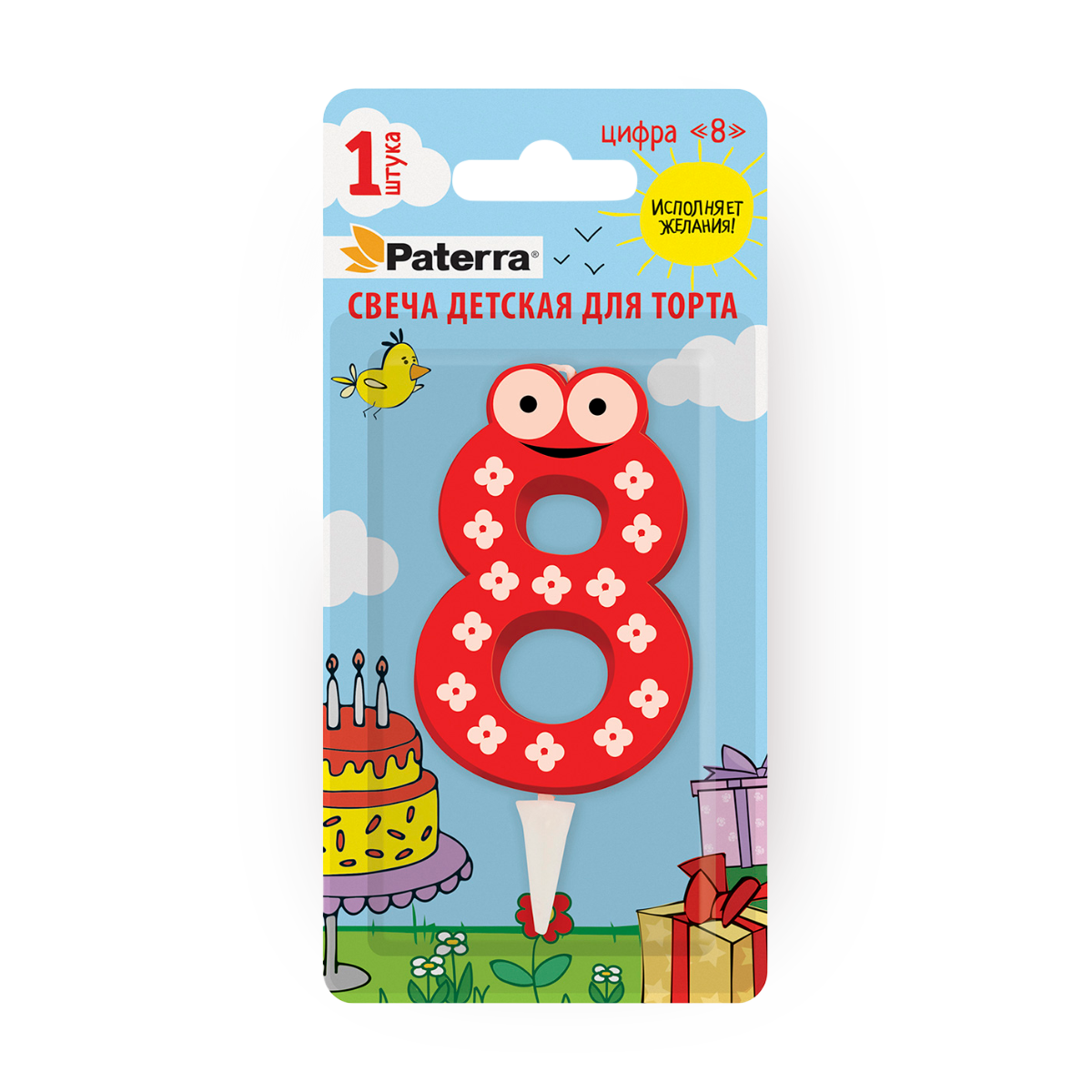 Свеча детская для торта PATERRA, цифра 8 (1шт.в упаковке)