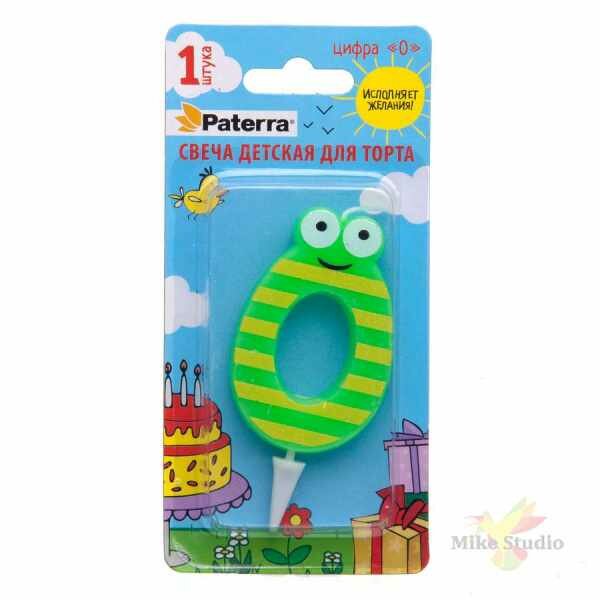 Свеча детская для торта PATERRA, цифра 0 (1шт.в упаковке)