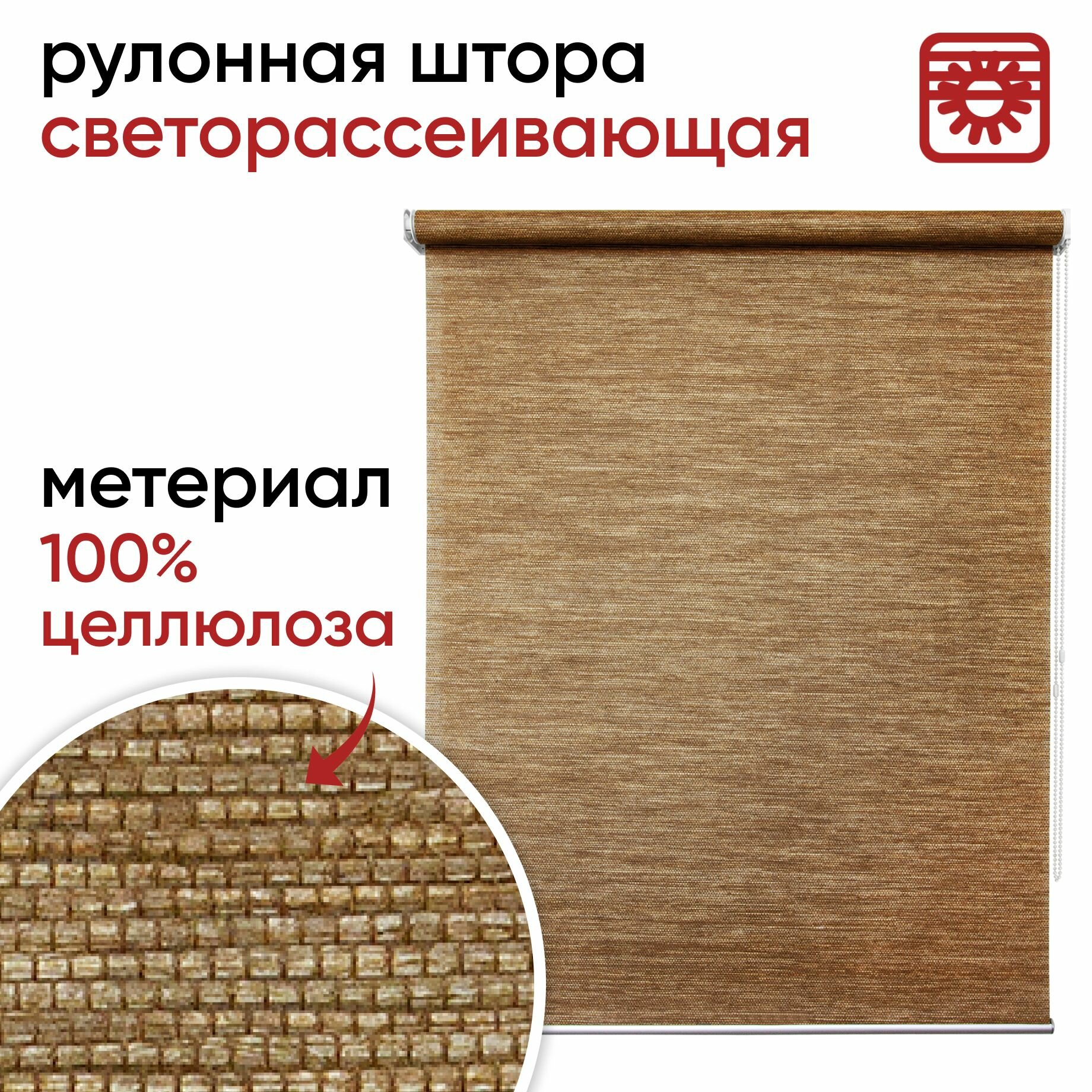 Рулонная штора светорассеивающая УЮТ 50х175 см Концепт коричневый, рулонные жалюзи, рольштора экологичная целлюлоза
