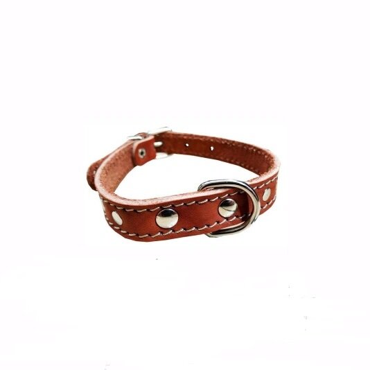 Аркон ошейник один слой кожи, украшения, декоративная строчка 26-34см*16мм натуральный