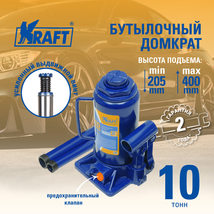 Купить Домкрат бутылочный 10 т. ( min 205mm-max 400mm), KRAFT KT800018 (1 шт.)