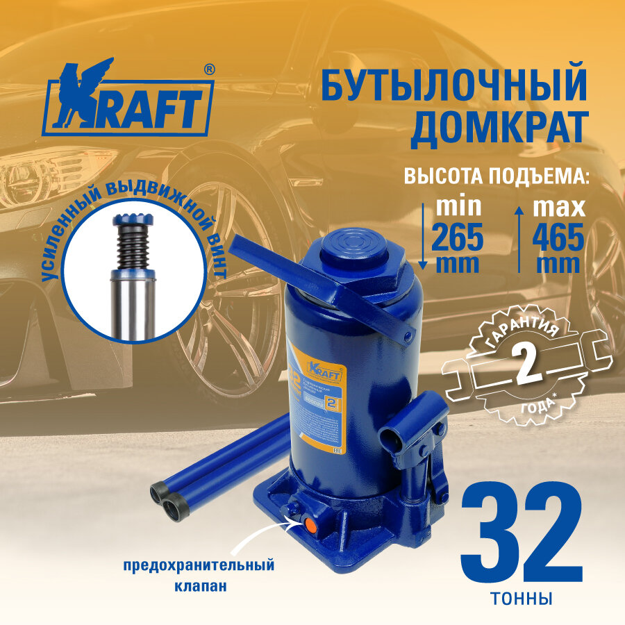 Купить KRAFT KT 800022 Домкрат бутылочный 32 т KRAFT 265 - 465 мм