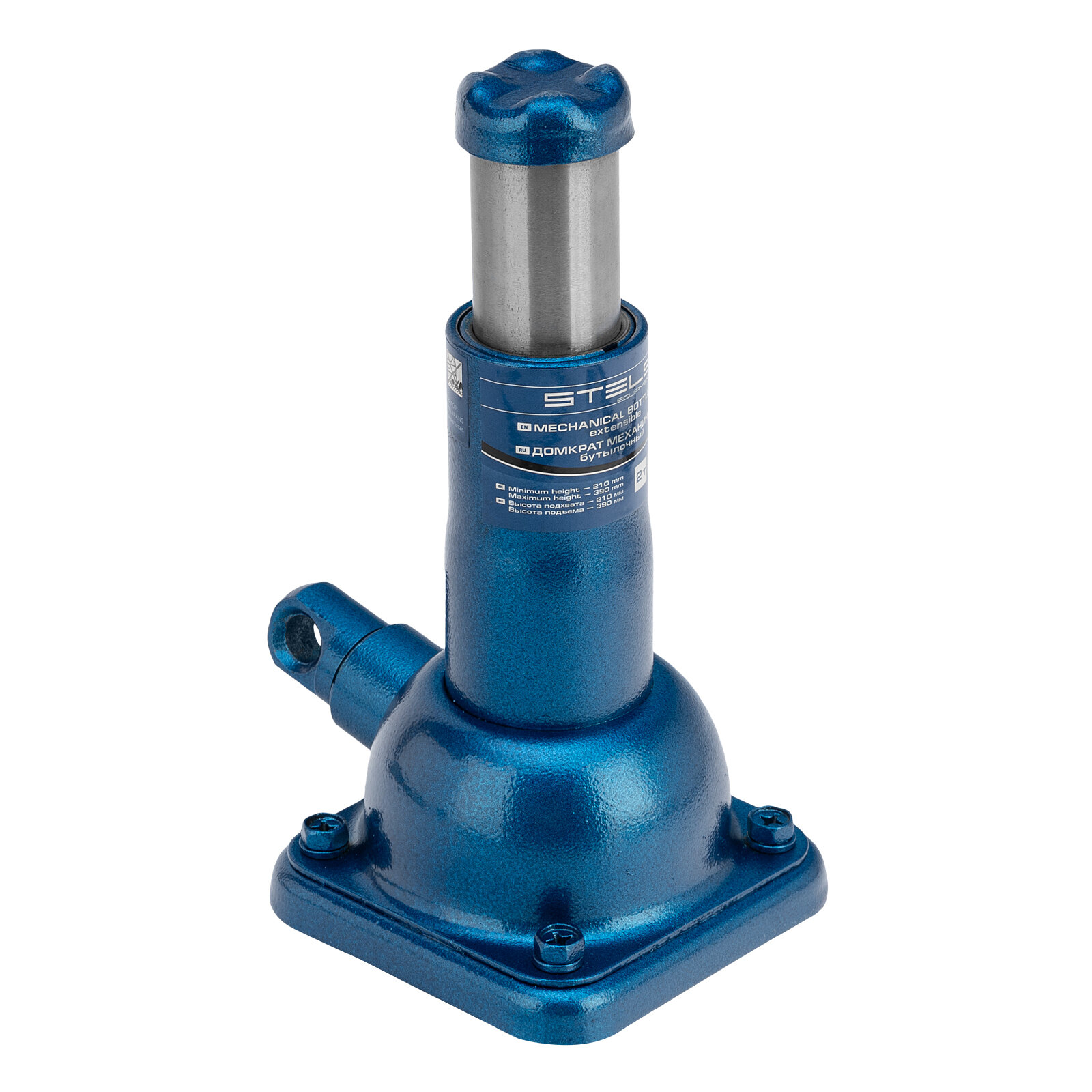 Домкрат механический бутылочный, 2 т, h подъема 210–390 мм, 2 части (домкрат, ручка), STELS 50103