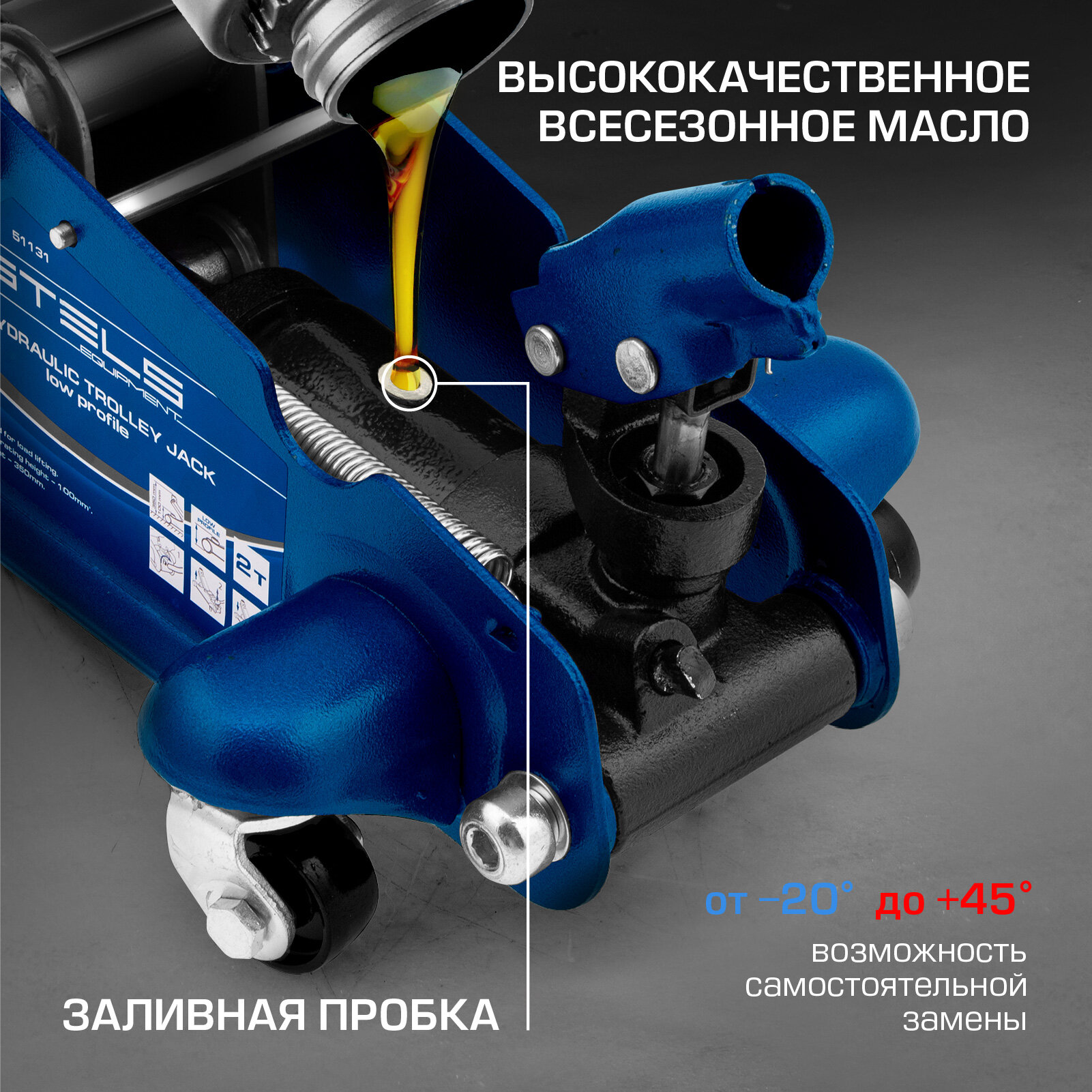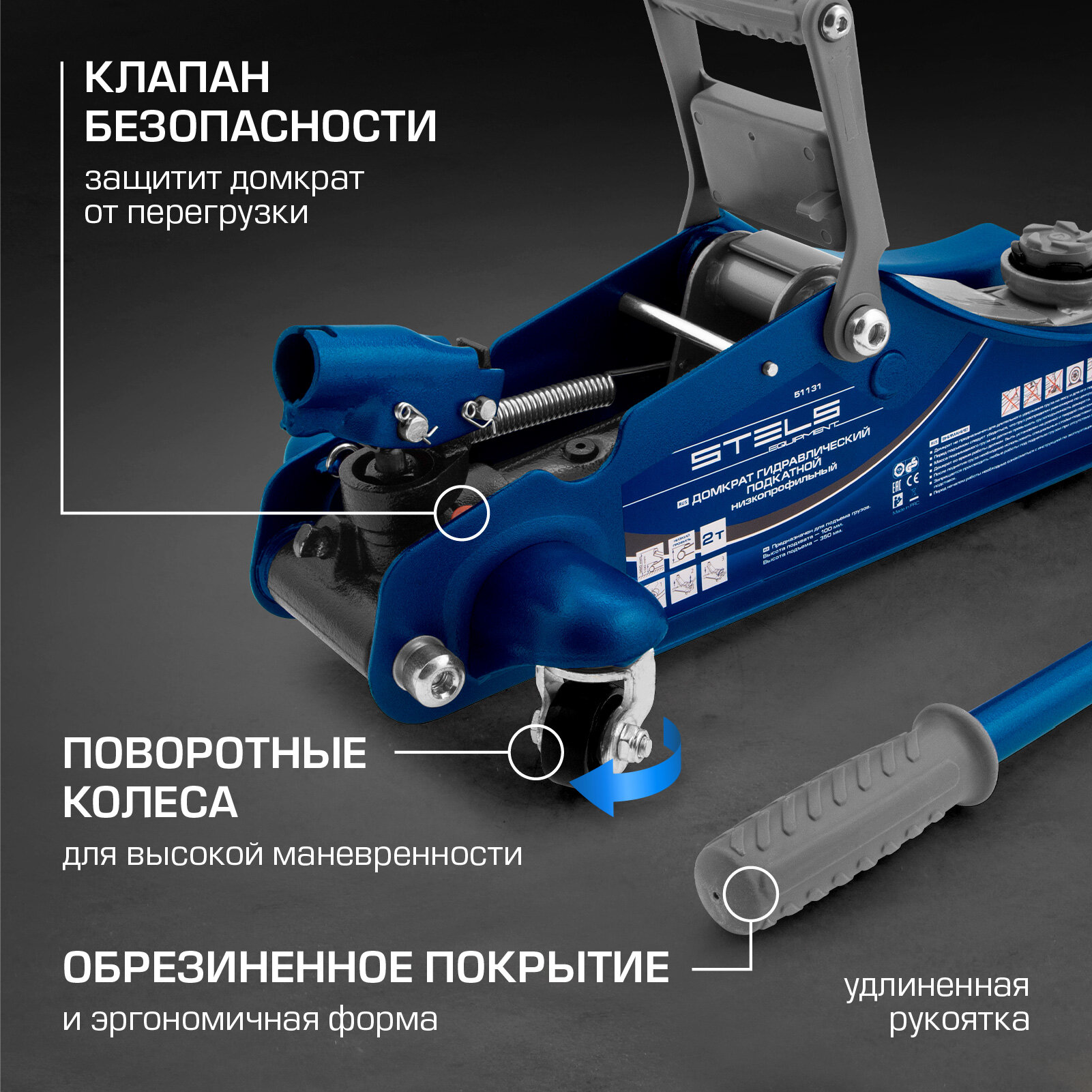 Домкрат подкатной гидравлический Stels 51131 (2 т) синий