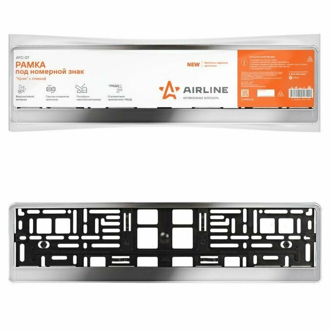 AIRLINE AFC-07 Рамка под номерной знак "Хром", с планкой AIRLINE AFC-07