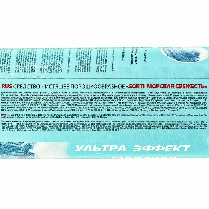 СохранитьSORTI Чистящее средство Sorti "Морская свежесть ", порошок, универсальный, 500 г интересное: