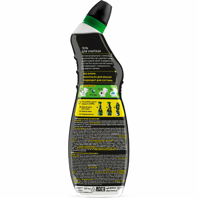 Средство для унитаза гель для унитаза, Expel чистящее средство, устранение налета и ржавчины, 750 мл интересное: