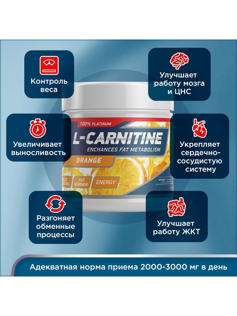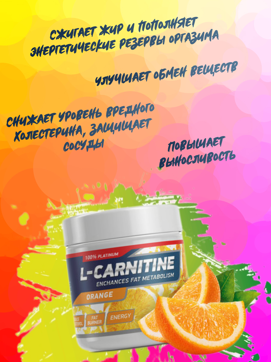 Л-карнитин CARNITINE Апельсин 150 грамм жиросжигатель для похудения и для снижения веса