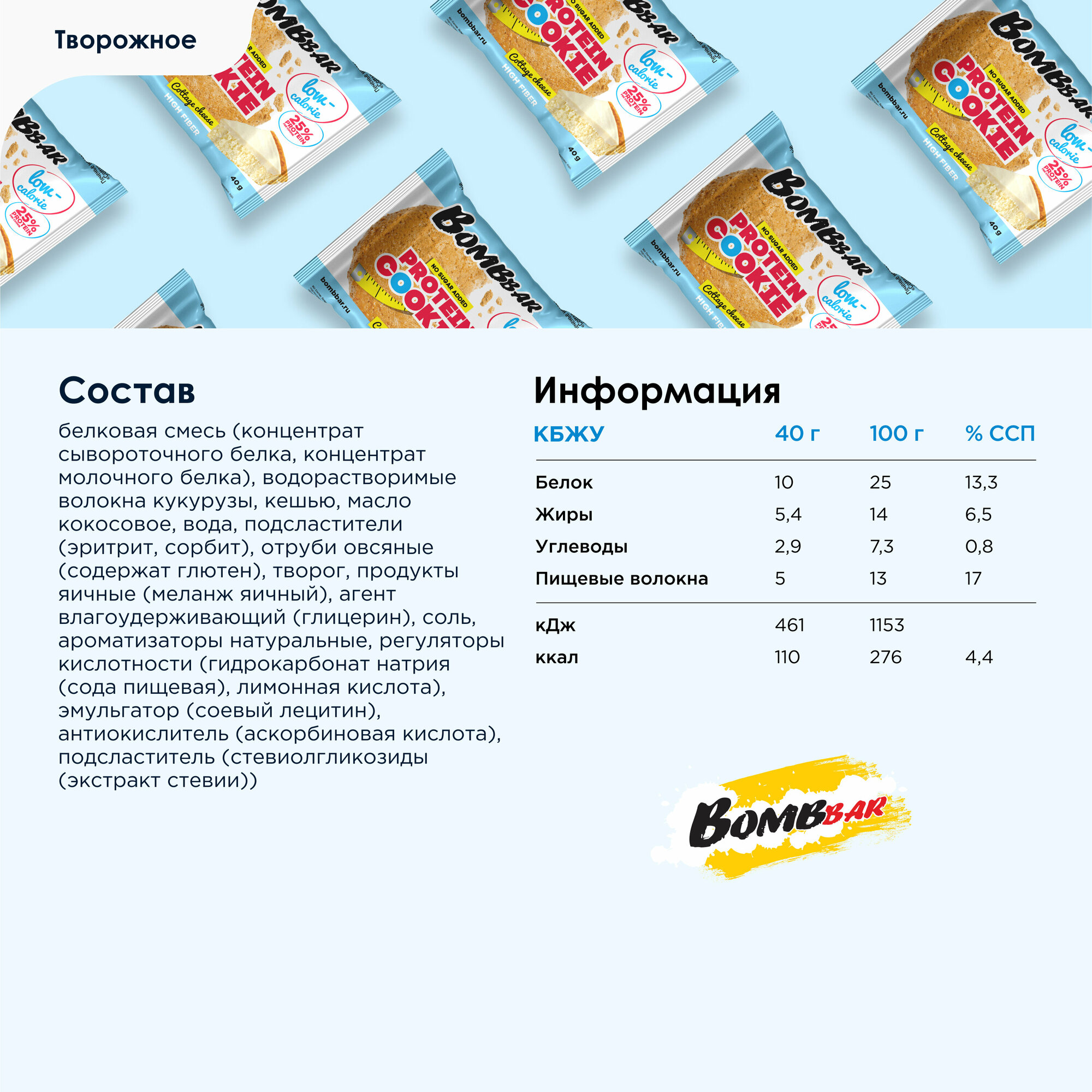 Купить Bombbar Protein Cookie Низкокалорийное протеиновое печенье без сахара "Творожное", 12 шт