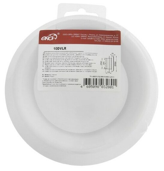 Анемостат ERA 10DVLR 68 x 145 мм белый 68 мм 145 мм 100 мм 100 мм 190 г
