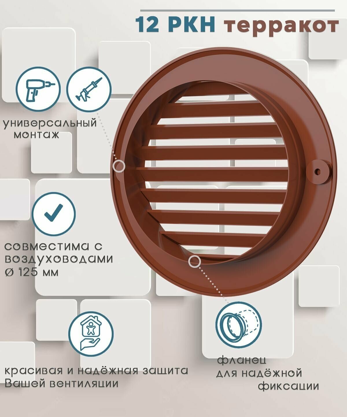 "12РКН терр Решётка вентиляционная наружная круглая ERA Street Line с фланцем D125, ASA пластик, терракотовая"