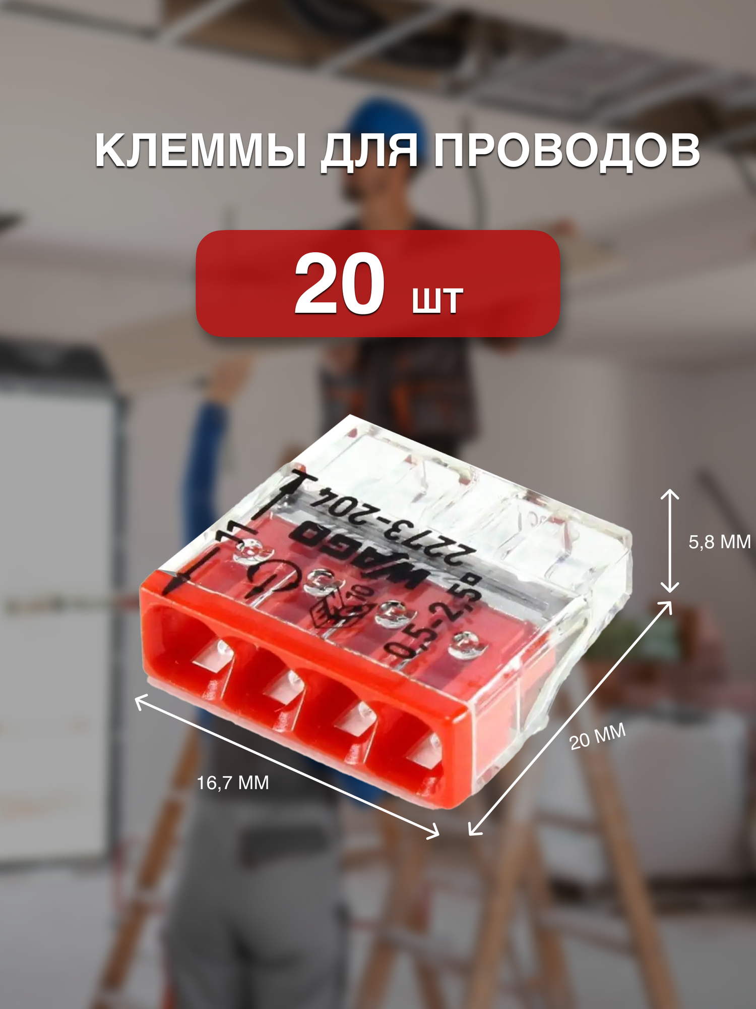 Cоединительная клемма 4-х проводная (2273-204), 20 шт