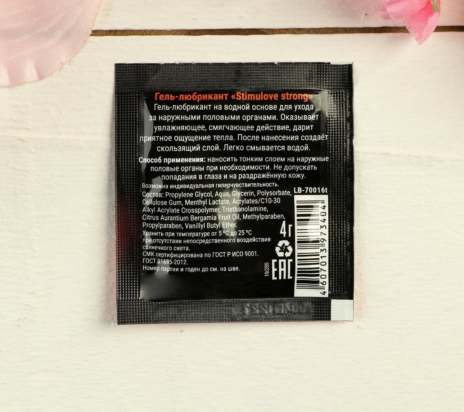 Гель-лубрикант лаборатория "биоритм" StimuLove strong, стимулирующий, 4 г, 20 шт. в упаковке