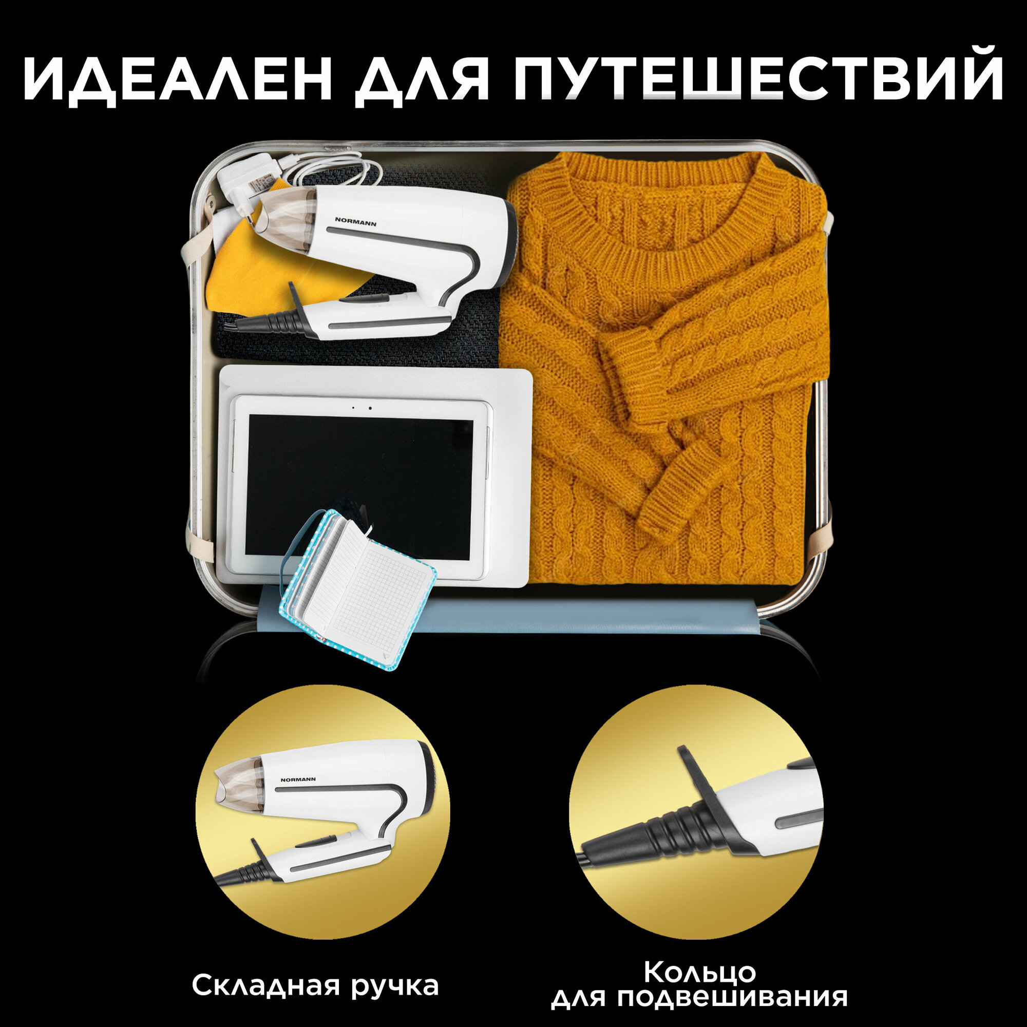 Фен для волос дорожный со складной ручкой NORMANN AHD-422