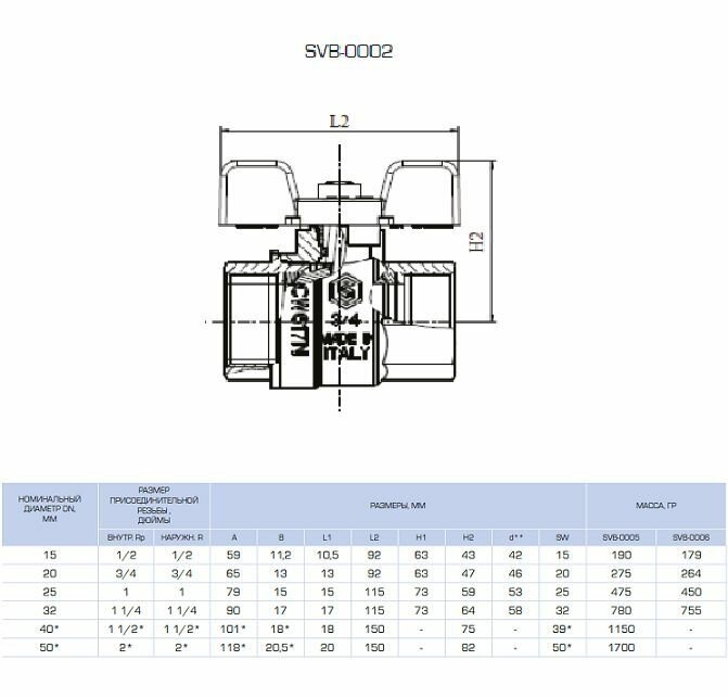 | Тип присоединения | муфтовый (ВР/ВР) |