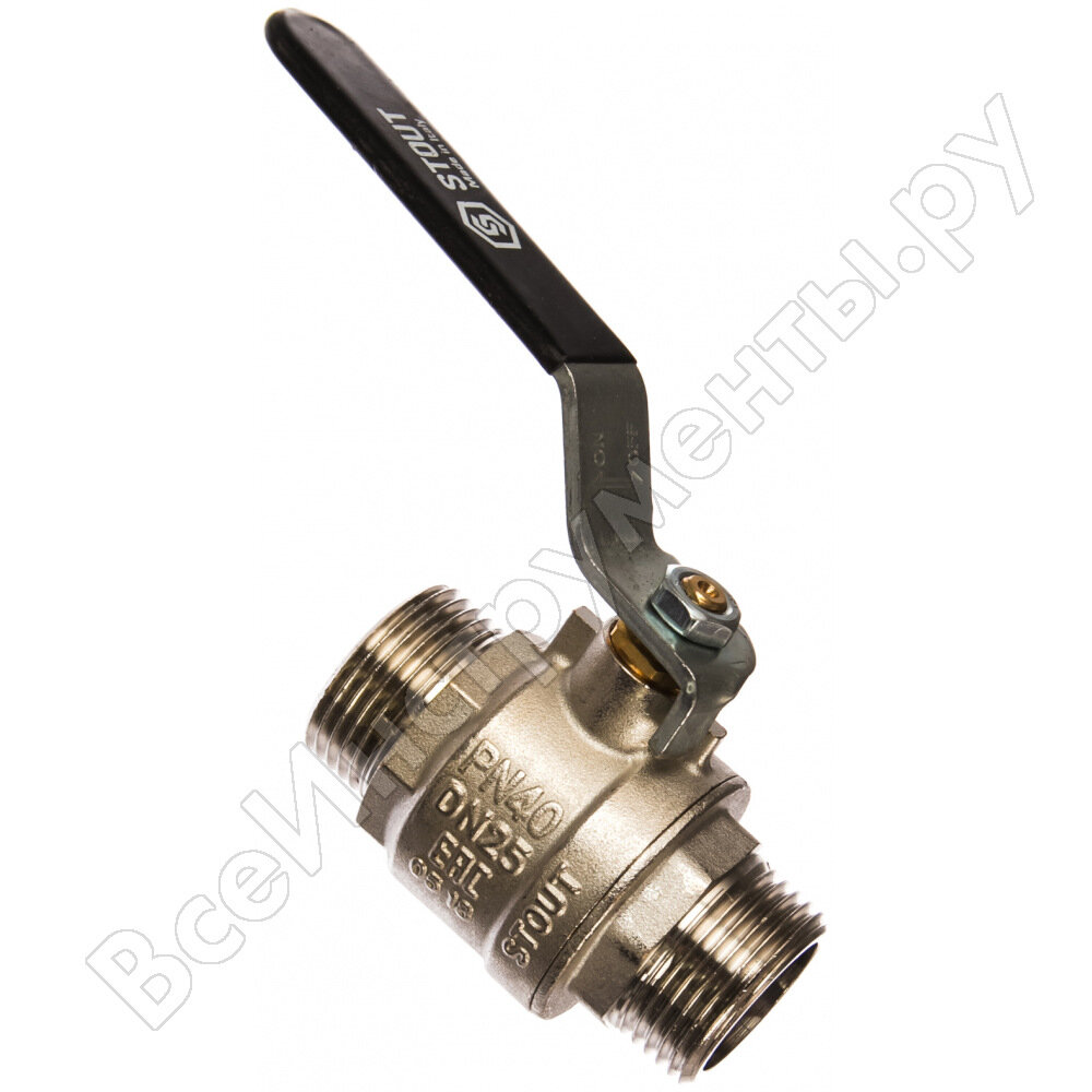Кран шаровой полнопроходной STOUT - 1"1/4 (НР/НР, PN40, Tmax 150°C, ручка-рычаг черная)