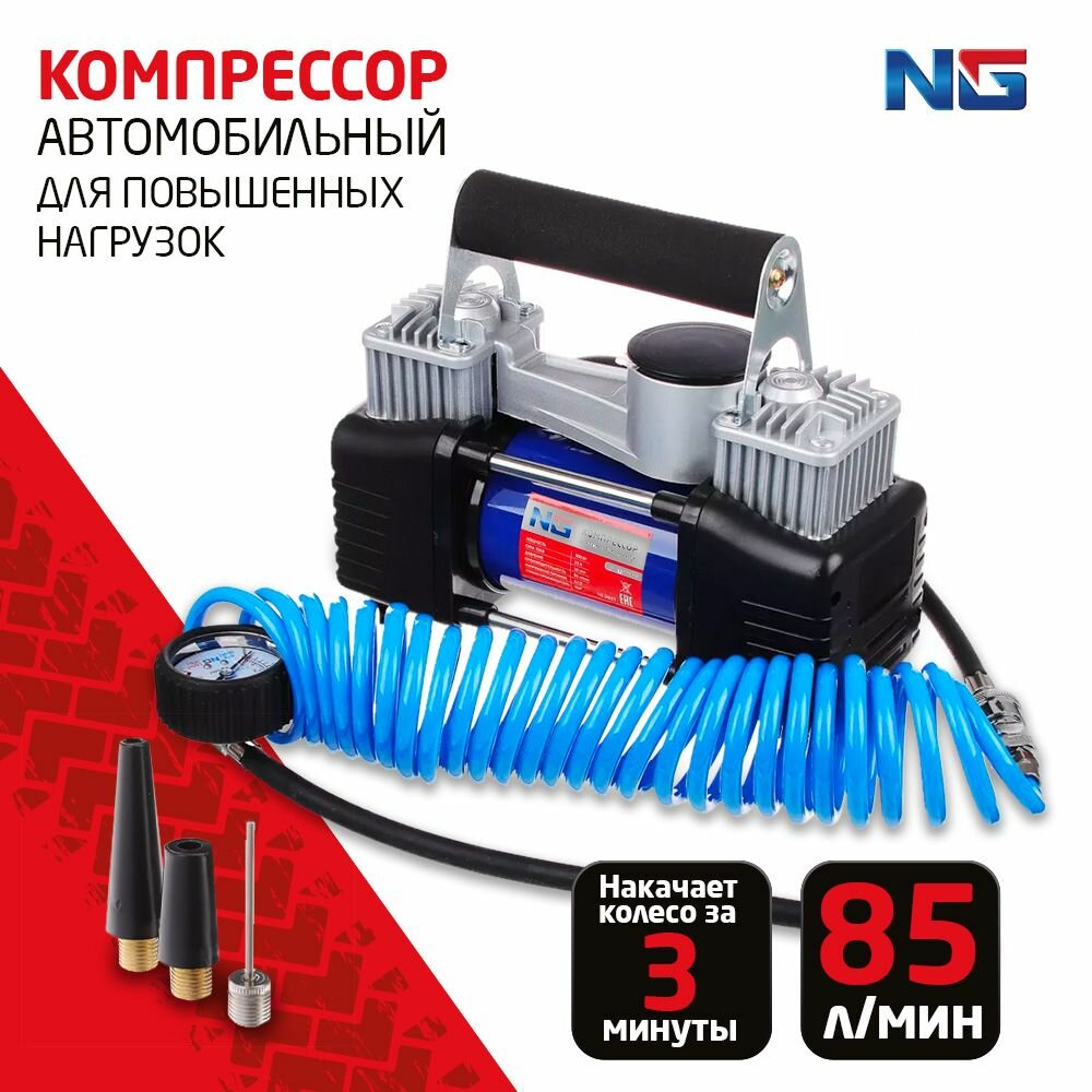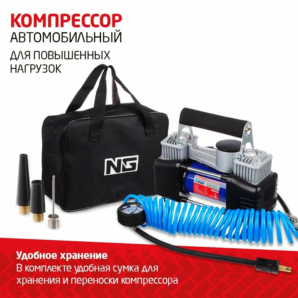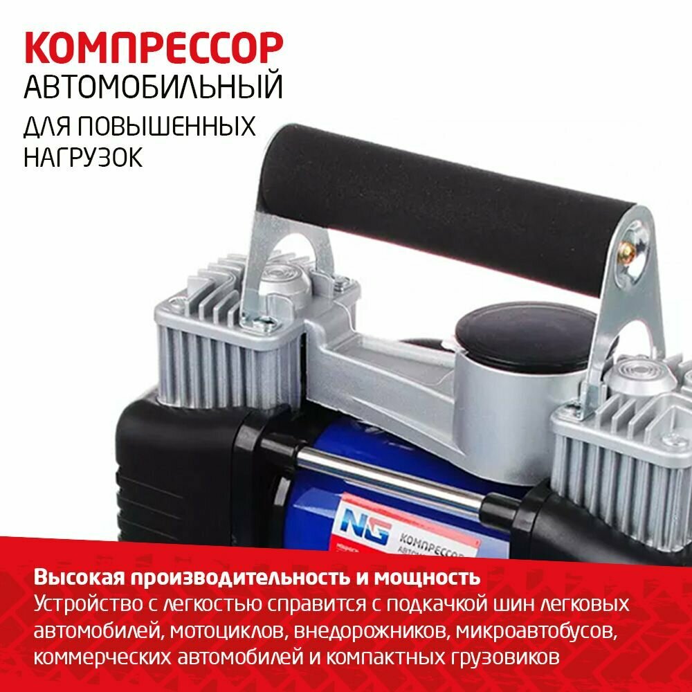 Компрессор автомобильный NEW GALAXY крокодилы к АКБ, 2-х поршн, шланг 5м, в сумке, 12V, 300W, 85л/м