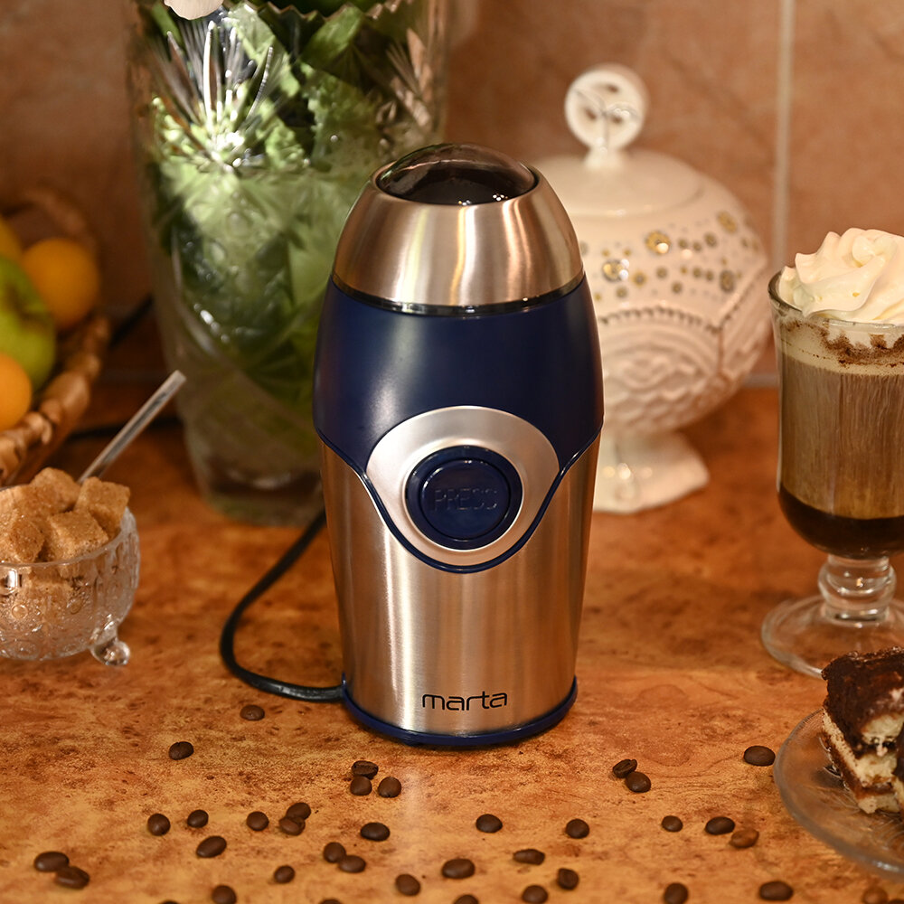 Кофемолка электрическая бытовая MARTA MT-2169 / 250 Вт / Синий Сапфир