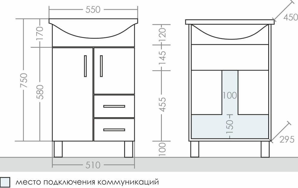 Тумба под раковину СанТа Уют 55, 2 ящика (201088)
