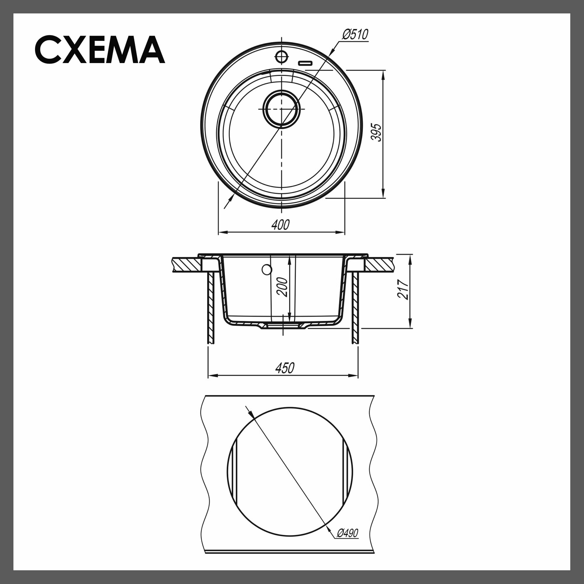 Мойка для кухни Florentina Никосия d510х217 мм врезная круглая без крыла кварц антрацит