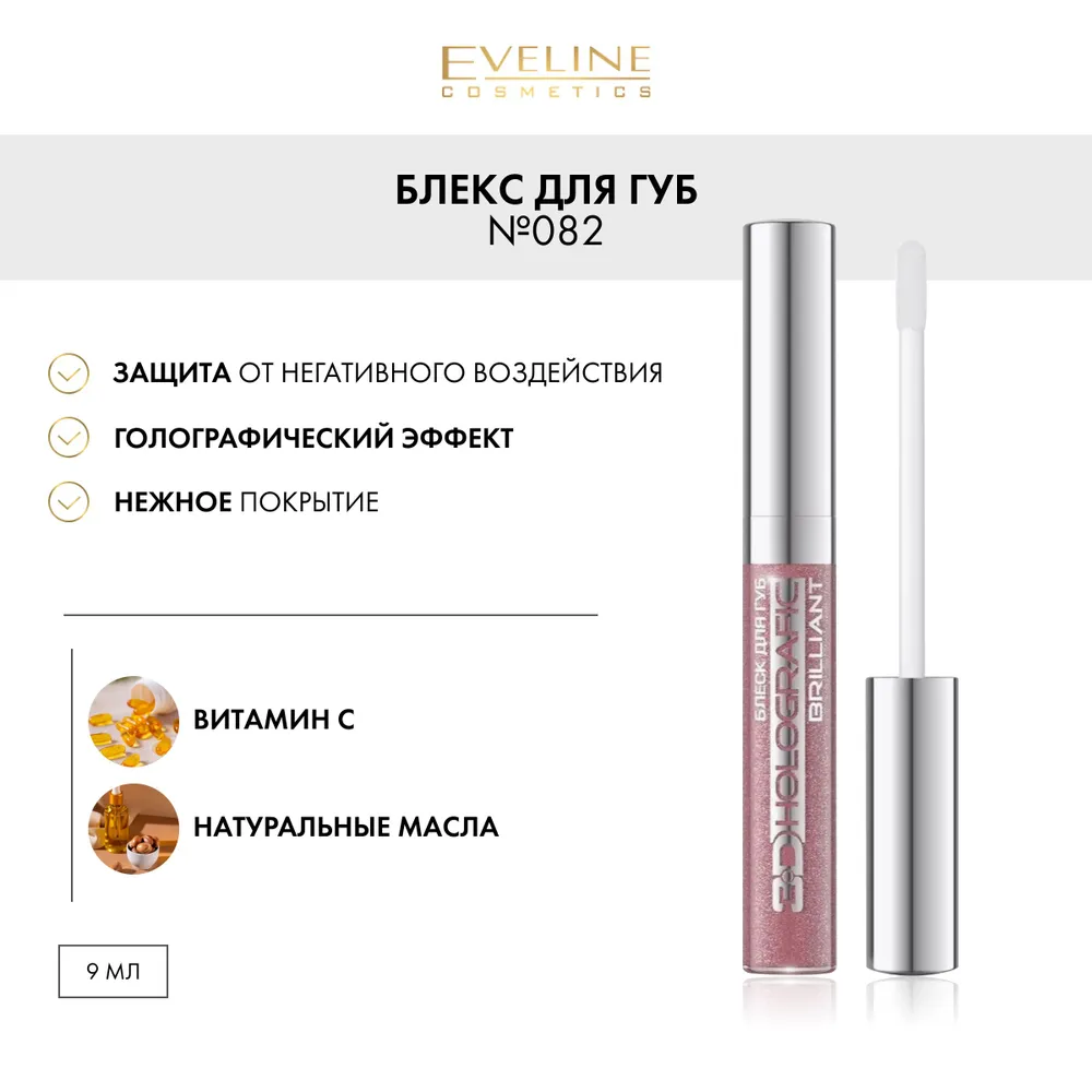 Блеск для губ EVELINE HOLOGRAFIC BRILLIANT №082 с голографическим эффектом, 9 мл