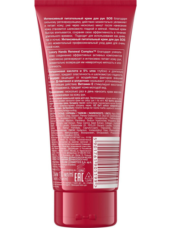 EVELINE.extra soft sos интенсивный питательный крем для рук для очень сухой кожи 100мл
