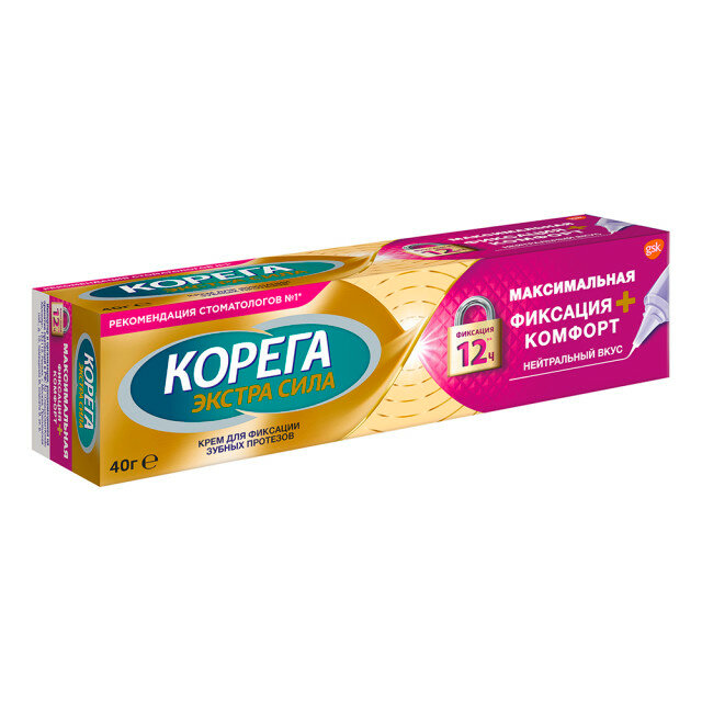 Корега Экстра сила "Максимальная фиксация + Комфорт" Крем для фиксации зубных протезов, 40г