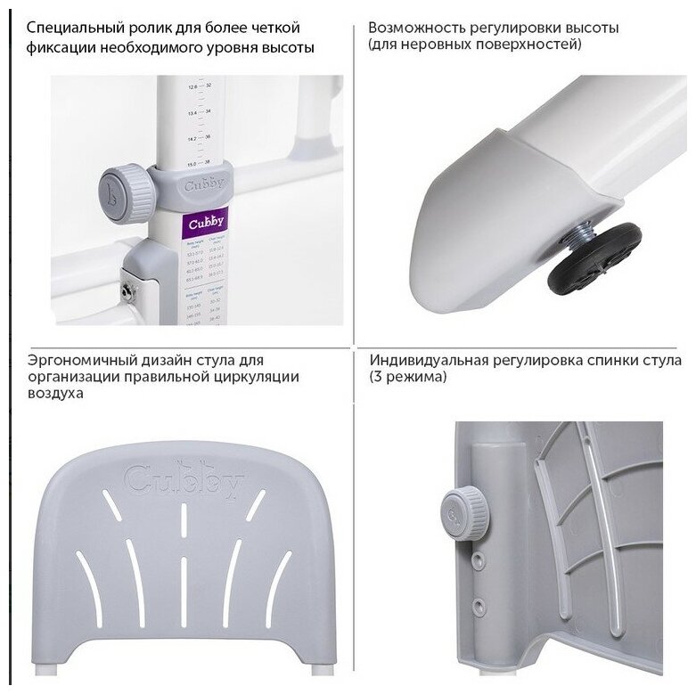 Комплект Cubby растущая детская парта и стул Karo 68.8x48 см grey