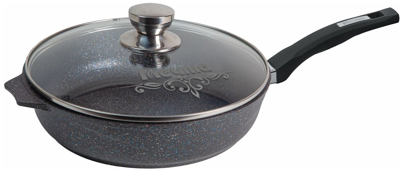 мечта с26802 гранит black 26см с несъемной ручкой и стекл. крышкой сковорода