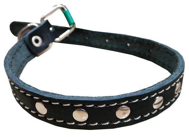 Ошейник аркон кожаный для собак однослойный, украшения, декоративная строчка, черный (21-29 см/14 мм)