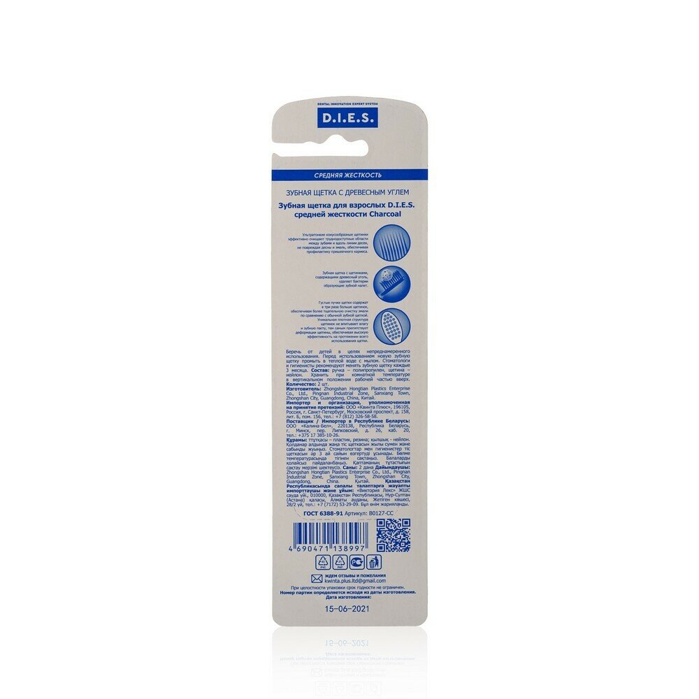 Зубная щетка D.I.E.S. CHARCOAL средней жесткости с углем 2 штуки интересное: