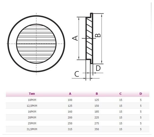 20РКМ, Решетка вентиляционная круглая D225 алюминиевая с фланцем D200