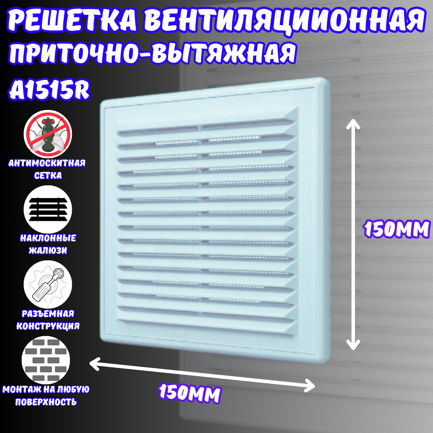Решетка вентиляционная AURAMAX А1515R, 150 x 150 мм, разъемная