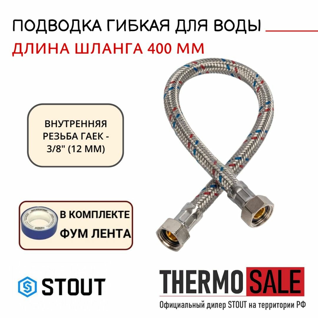 Stout Гибкая подводка для воды ВР 3/8 х ВР 3/8, длина 400 Rg008p0sigpeff .